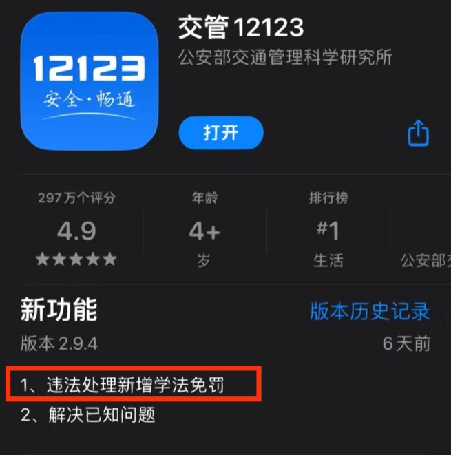 在交管12123app最新版本介绍中有明确表示,部分轻微违法处理新增学法免罚。
