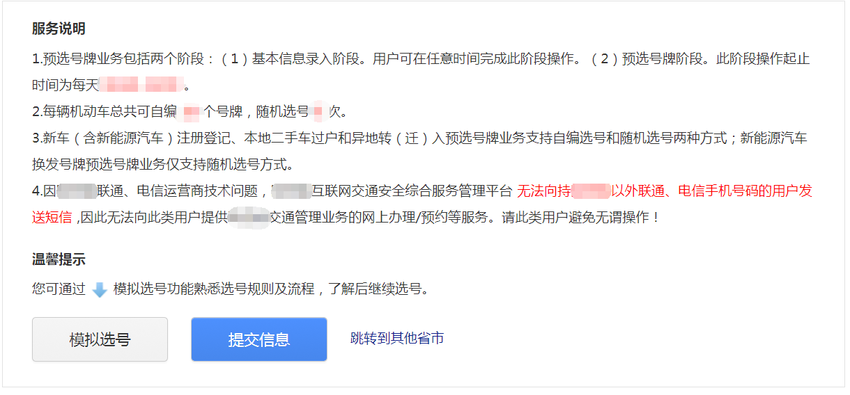(1)请用户务必认真阅读业务须知,知晓预选号牌号码有效期、信息录入要求以及其他内容。