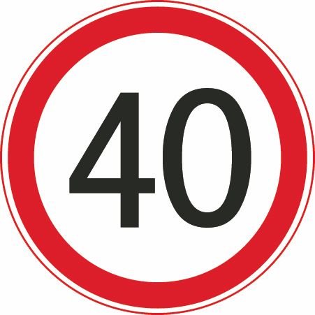 分析:图中标志为限制最高时速40公里,表示该标志至前方限制速度标志的路段内,机动车行驶速度不得超过标志所示数值。