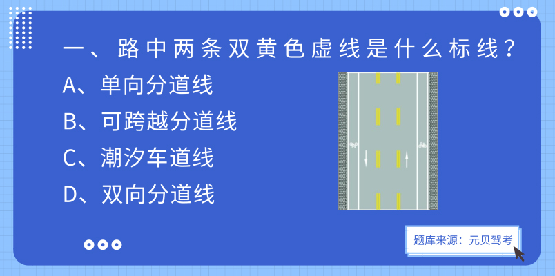 元贝解析:路中两条双黄色虚线是潮汐车道线。 “潮汐车道”是指根据早晚交通流量不同情况,对有条件的道路,试点开辟潮汐车道,通过车道灯的指示方向变化,控制主干道车道行驶方向,来调整车道数,提高车道使用效率。