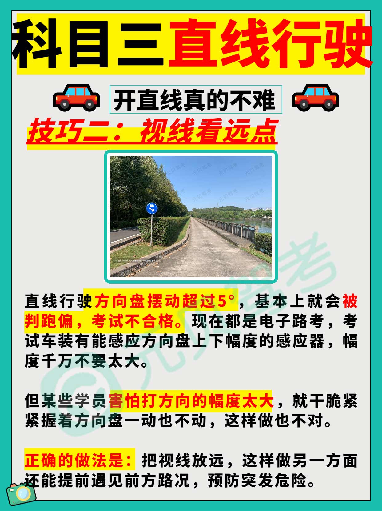 关于科目三直线行驶:有人说,要不断调整方向盘,才能保持直线行驶,还有人说要坚决不动方向盘,不然容易跑偏...那么,直线行驶到底该如何做呢?跟着元贝驾考一起来看看吧!